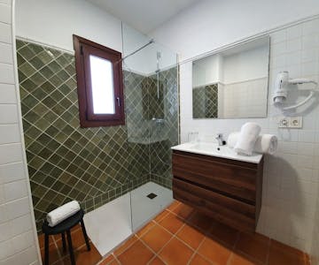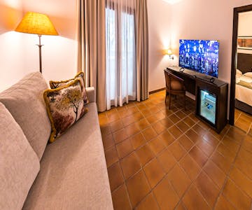 Si busca comodidad, descanso, disfrutar de la tranquilidad de la Sierra en un espacio más amplio y privacidad absoluta en sus dos terrazas. La Suite Terraza Superior de IC-Hoteles Casa García Almonaster la Real brinda todo eso y muchísimo más. Esta luminosa y alegre habitación posee un espacio acogedor y moderno en el que ponemos a su disposición un amplio dormitorio con dos camas individuales, un salón provisto de sofá-cama, dos amplios cuartos de baño con ducha y dos agradables terrazas.