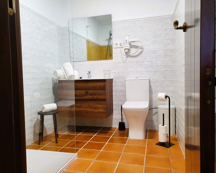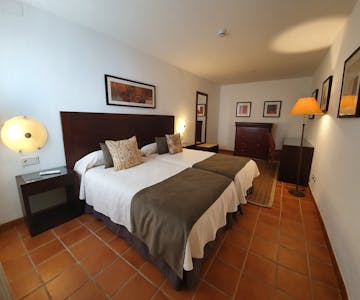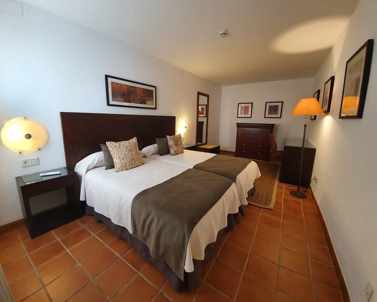 Si busca comodidad, descanso y disfrutar de la tranquilidad de la Sierra en un espacio más amplio la Suite de IC-Hoteles Casa García Almonaster la Real brinda todo eso y muchísimo más. Esta alegre habitación posee un espacio acogedor y moderno en el que ponemos a su disposición un amplio dormitorio con dos camas individuales, un salón provisto de sofá-cama y un amplio cuarto de baño con ducha.
