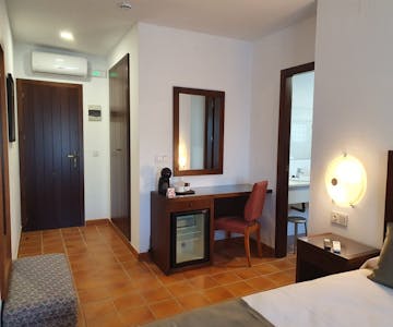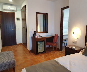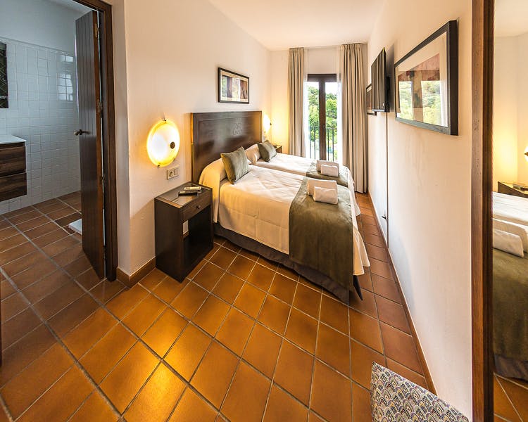 If you are looking for comfort, rest and unparalleled views, the standard double room with balcony at IC-Hoteles Casa García Almonaster la Real offers all that with spectacular views of the Almonaster Mosque and the Sierra de Aracena y Picos de Aroche Natural Park. This room has a cozy and modern space in which we offer you a bedroom with two single beds and a bathroom with a shower.